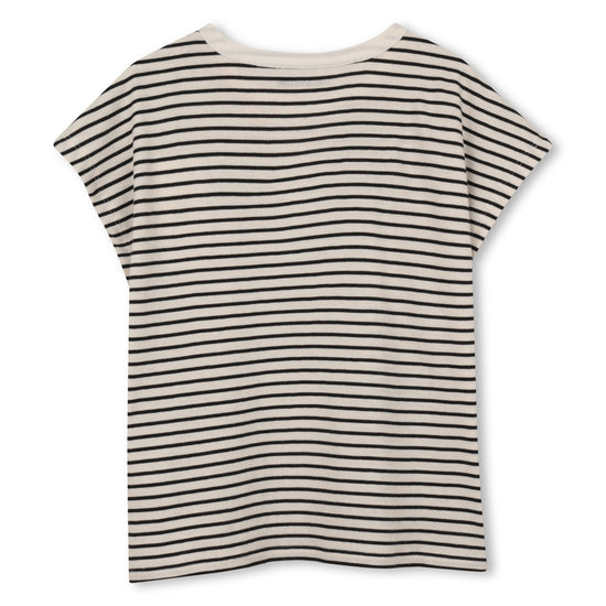 Camiseta manga corta con rayas y brillos