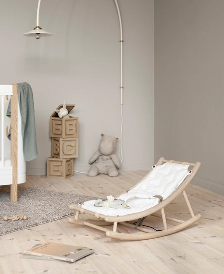 Pensado con una clara vocación de larga vida útil, el baby & toddler rocker evoluciona junto al niño. Cuando termina la etapa de bebé, el cojín acolchado extraíble se retira y el balancín se transforma en un rocker para niños pequeños, apto hasta los 7 años o 25 kg. En esta nueva fase, el niño puede leer, jugar, relajarse o disfrutar de momentos tranquilos con total comodidad.