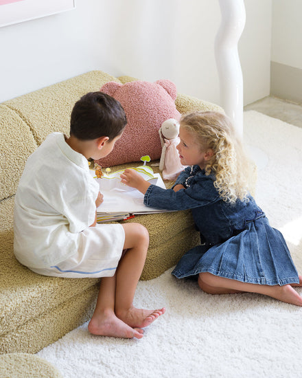 Descubre un settee diseñado para convertirse en el mejor compañero del día a día, aportando calidez, estilo y un sinfín de posibilidades de juego y descanso. Su versatilidad permite integrarlo con facilidad en cualquier tipo de hogar, creando un espacio seguro para relajarse, leer, inventar historias, construir fuertes o simplemente desconectar.