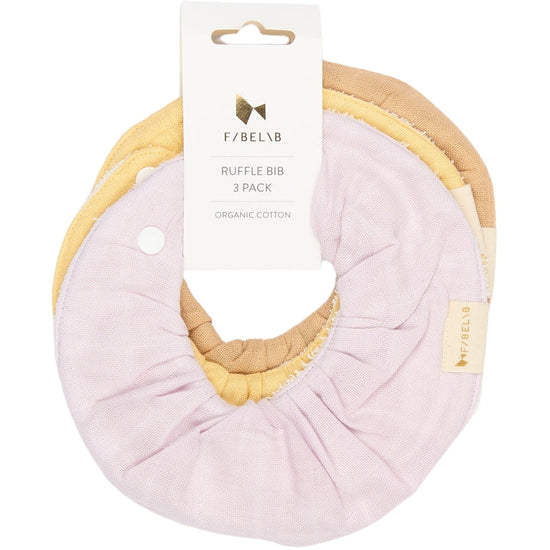Este pack incluye tres baberos con volantes en bonitos tonos suaves, ideales para usar a diario o como un regalo especial.
