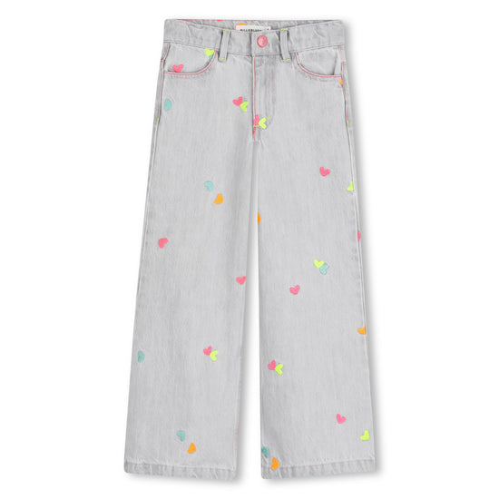 Pantalón vaquero Billieblush cómodo y colorido, con bordados de pequeños corazones que aportan un toque divertido. Su cintura ajustable y corte amplio garantizan libertad de movimiento y confort durante todo el día. Los detalles de firma, cierre decorativo y etiqueta de silicona añaden un acabado refinado y juguetón. Perfecto para combinar con camisetas o sudaderas y crear looks alegres y llenos de estilo.
