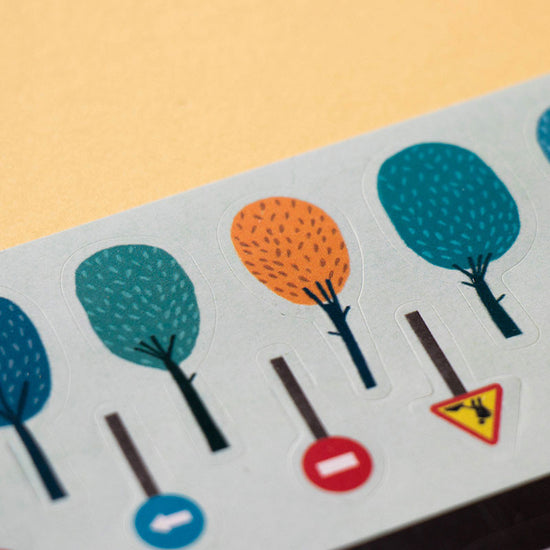 ¡Un juego con 150 pegatinas removibles de casas, coche, árboles, carreteras y señales de tráfico para que construyas la ciudad de tus sueños sobre tu escenario preferido!