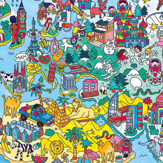 Un espacio artístico ilimitado para colorear solo o en compañía, para colgar en el suelo, en la pared o como mantel.