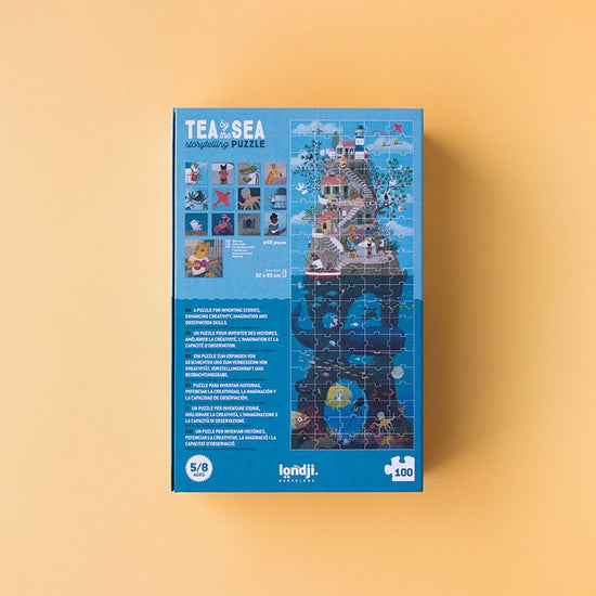 Un puzzle onírico de 100 piezas y además 48 fichas con las que te proponemos juegos para inventar historias y potenciar la imaginación de toda la familia.