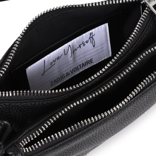 El SAC À MAIN de Zadig & Voltaire es un bolso compacto de estilo urbano con carácter rockero. Confeccionado en material texturizado negro, destaca por sus tachas metálicas y el icónico logo de alas en el frontal. Cuenta con cierre superior de cremallera y correa ajustable para llevar al hombro o cruzado. Perfecto para looks casuales con personalidad, combina diseño francés y funcionalidad en un formato práctico para el día a día.