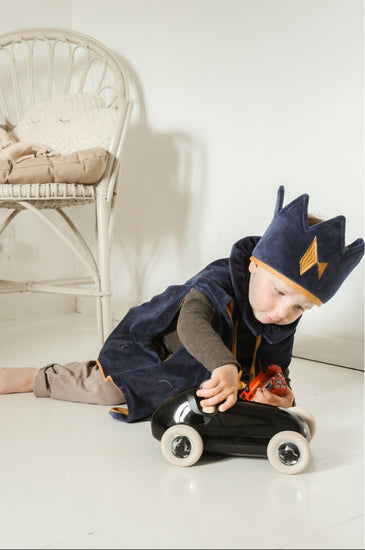La corona a juego completa el look real, convirtiendo este conjunto en el accesorio perfecto para juegos de imaginación, fiestas reales o grandes proclamaciones en el palacio.