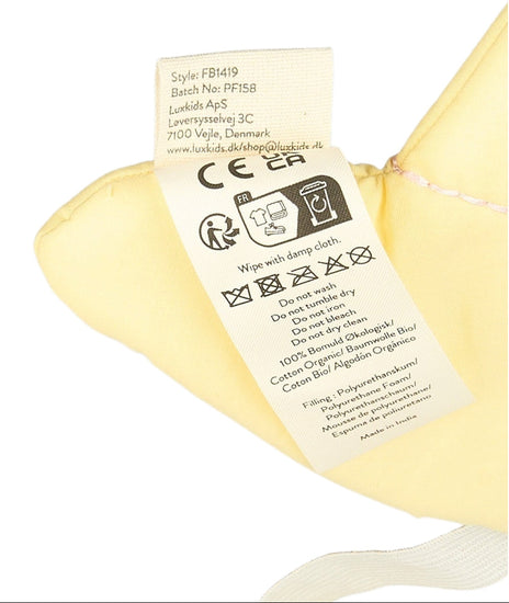 Composición: 100% algodón orgánico · Relleno: 100% espuma de poliuretano · Varilla: madera de pino