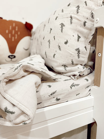 Dale un toque de dulzura a la cama de tu bebé con esta funda de almohada de muselina de algodón con un estampado único y original.