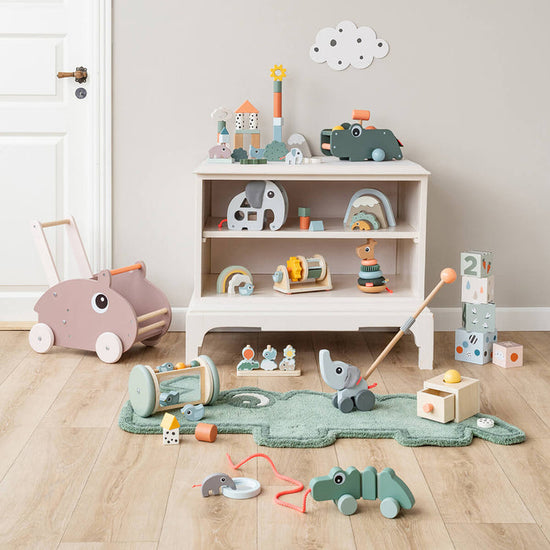 Acompaña los primeros pasos de tu peque con el Arrastre Croco en fresco color verde, un juguete que combina diversión y desarrollo. Recomendado a partir de 12 meses o cuando el niño camine con confianza, este Deer Friend anima al paseo y al juego imaginativo. El cuerpo de Croco se mueve hacia arriba y abajo con un divertido contoneo, mientras que sus ruedas blandas protegen el suelo durante la diversión.