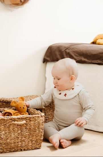 El Babero con Volantes de Fabelab combina un diseño encantador con la máxima practicidad. La parte trasera, confeccionada en tejido de rizo, ayuda a que el babero se mantenga en su sitio y proporciona una mayor capacidad de absorción, perfecta para mantener seco y cómodo al bebé.