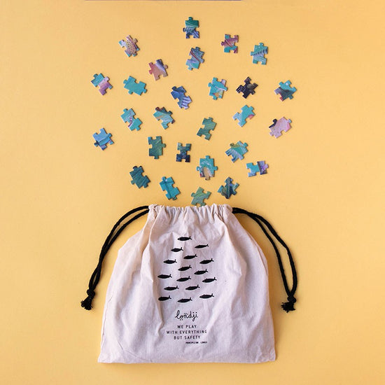 Un puzzle de 350 piezas, algunas con purpurina, para dejar volar la imaginación hacia mundos llenos de fantasía, para niñas y niños mayores de 8 años.