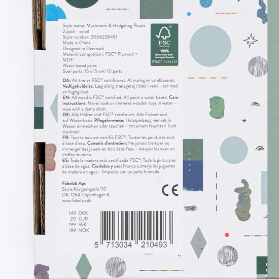 Descubre este set de 2 puzles infantiles, perfecto para acompañar a tu peque en sus primeros aprendizajes. Con diseños dulces del erizo y los hongos del universo Fabelab, estos puzles estimulan la imaginación mientras ofrecen un juego tranquilo y educativo.