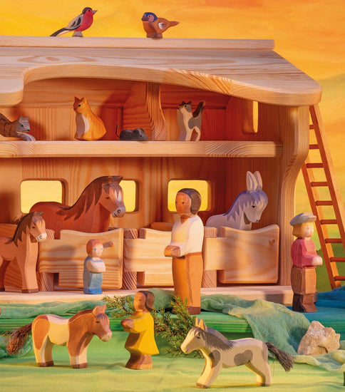 Este ratón de madera forma parte de la colección de la granja y los cuentos de Ostheimer. Una figura llena de vida que invita al juego libre, imaginativo y lleno de historias.