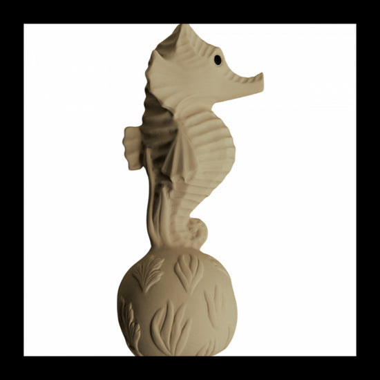 Un precioso sonajero con forma de caballito de mar, suave al tacto y con un delicado cascabel en su interior. Fabricado en caucho natural 100%, es seguro para los más pequeños y perfecto para estimular sus sentidos desde los primeros meses.