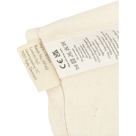 • Materiales: 100% algodón orgánico, relleno 100% espuma de poliuretano, palo de madera de pino