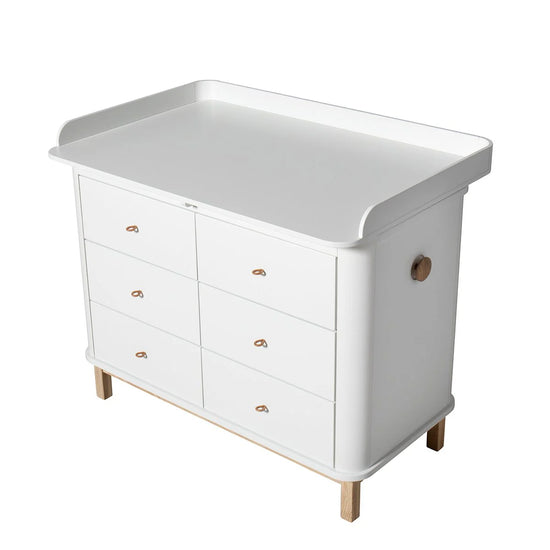 Cuando la etapa del cambiador termina, el tablero se retira fácilmente, dejando una cómoda atemporal que encaja a la perfección en cualquier estancia del hogar. La cuidada artesanía y los materiales de alta calidad convierten esta cómoda en una opción segura, duradera y elegante para el hogar familiar.